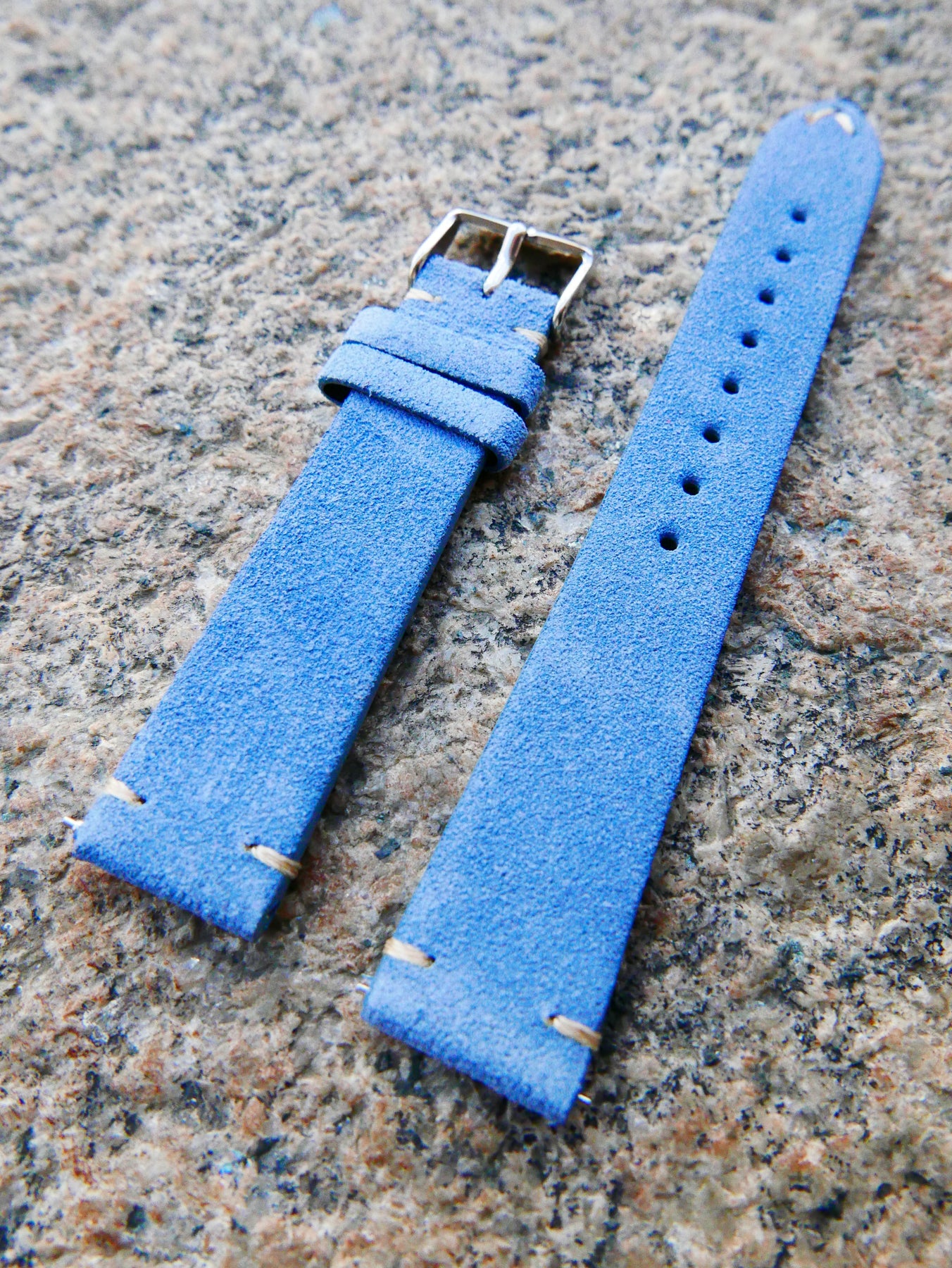 This Miami Blue Italian suede watch strap shines against neutral wool overcoats, light roll-necks, slim raw denim, or casual corduroy, adding a subtle coastal flair that makes any timepiece feel refreshed and modern.