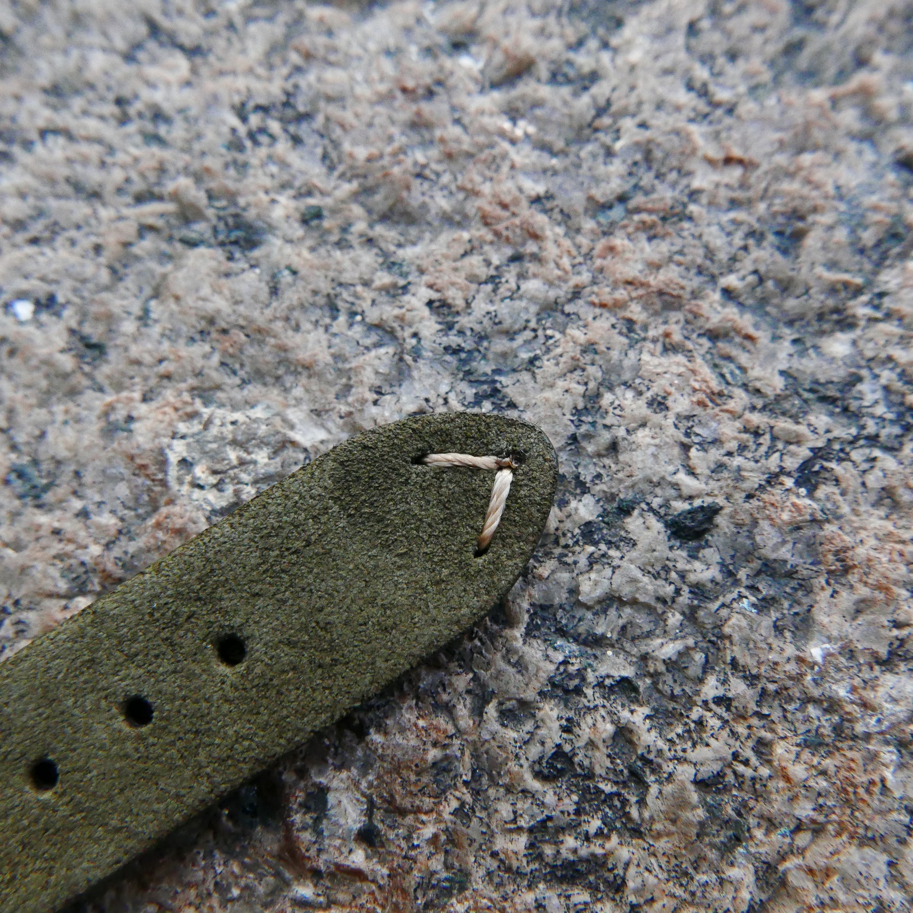 This Nuevo Green Italian suede watch strap shines against olive wool overcoats, earthy flannel, raw denim pants, or hiking boots, providing a natural depth for adventure-ready looks.