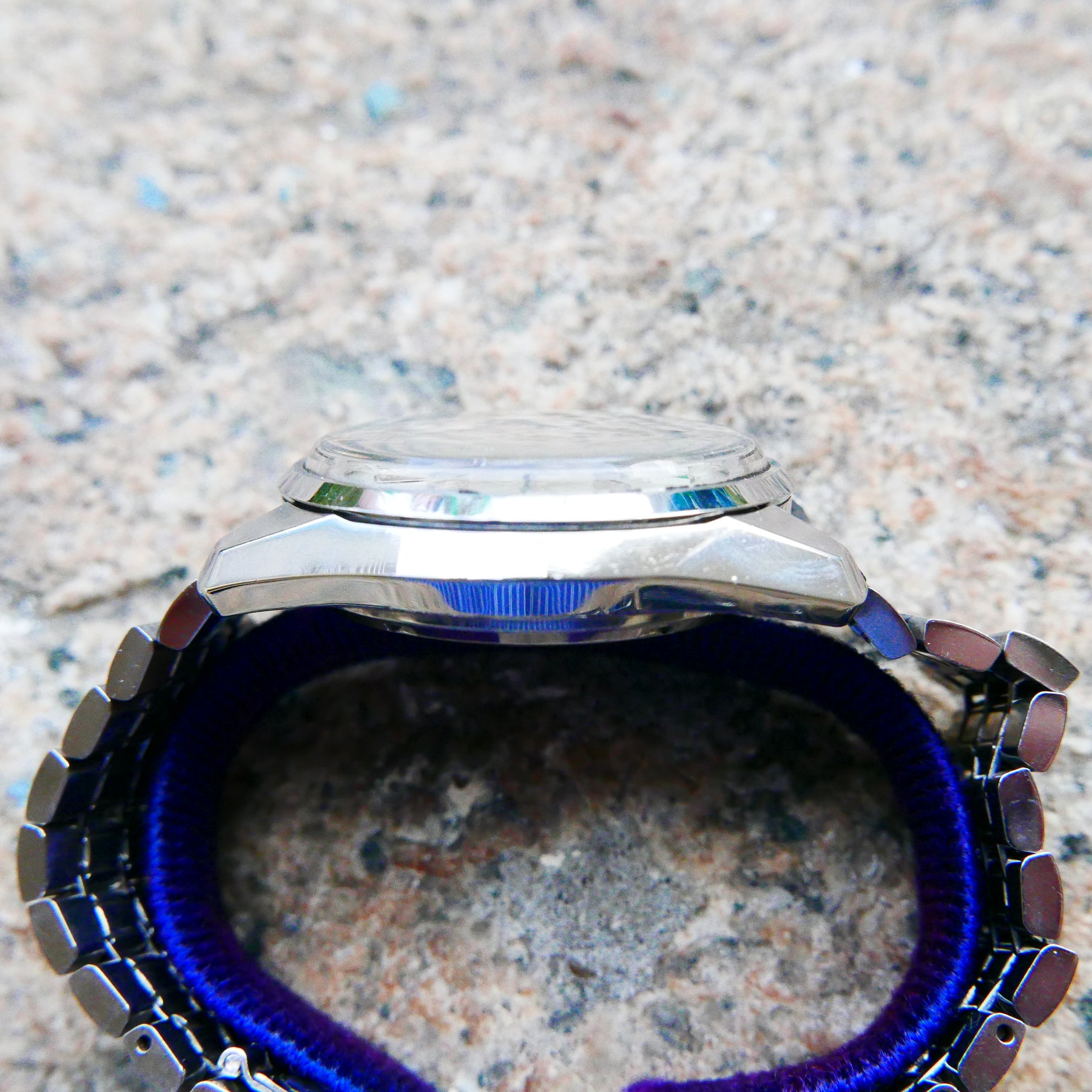 Dial Condition: Silver dial with no aging found on the dial. Pairing up with a rare a diminishing triangle alarm indicating a triangle. The overall condition is epic!