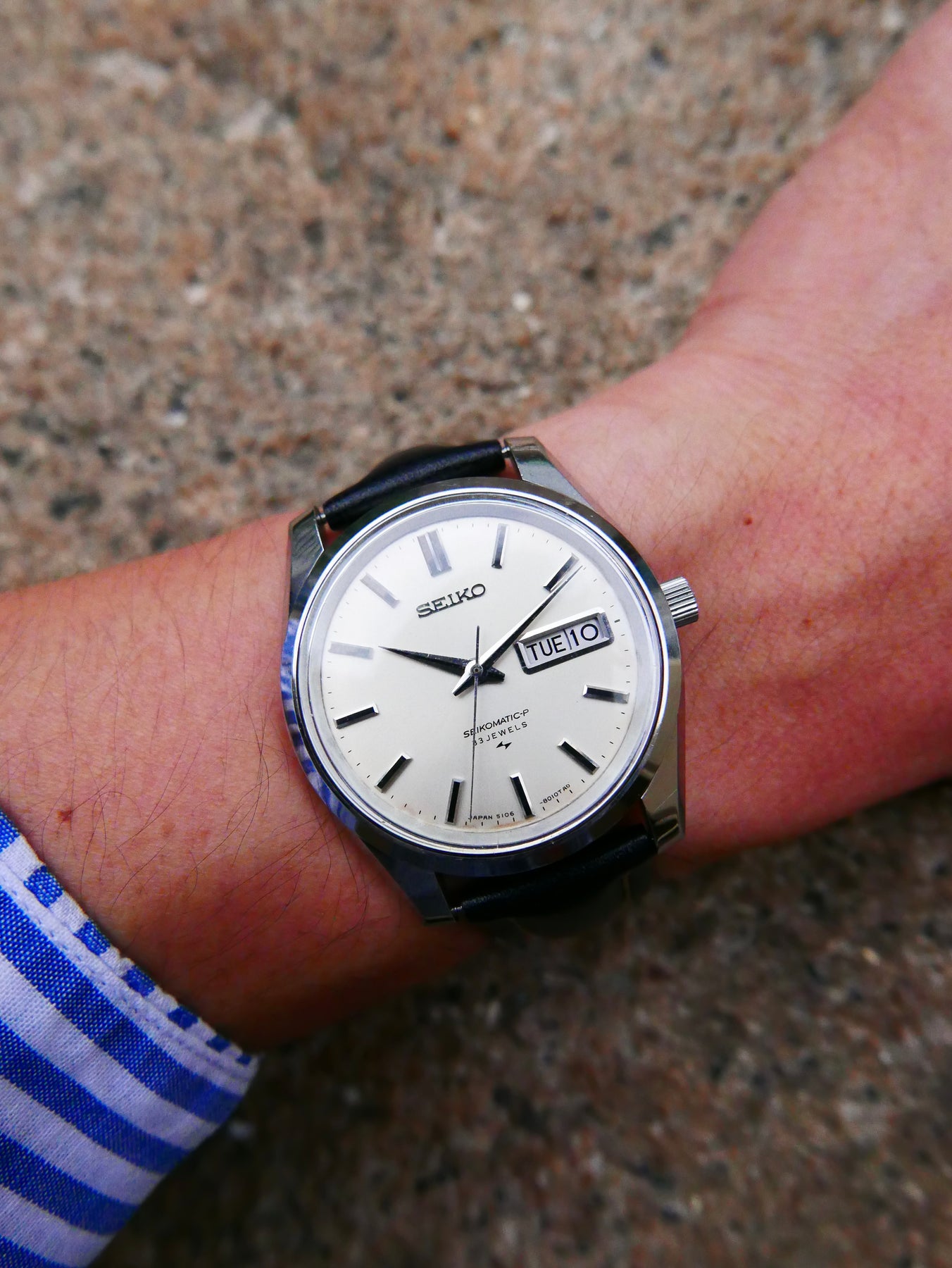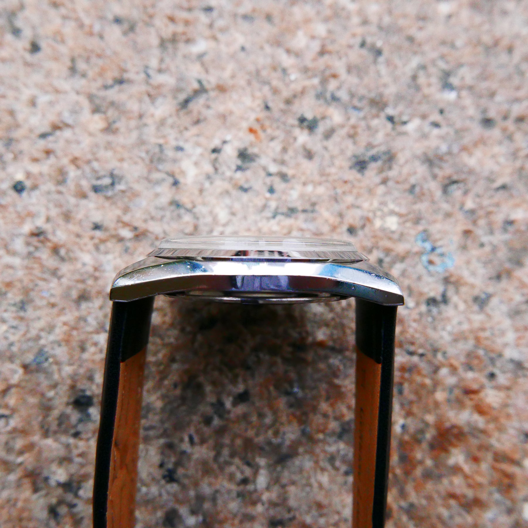The Seikomatic P 5106 distinguishes itself with its unique design elements that set it apart from contemporaries like the Omega Seamaster. Its extended lugs and a polished finishes on the watch case confer a modern yet timeless appeal, ensuring it remains stylish even by today's standards. The 35mm case size strikes an ideal balance between presence and subtlety, making it an elegant accessory for both daily wear and formal occasions.
