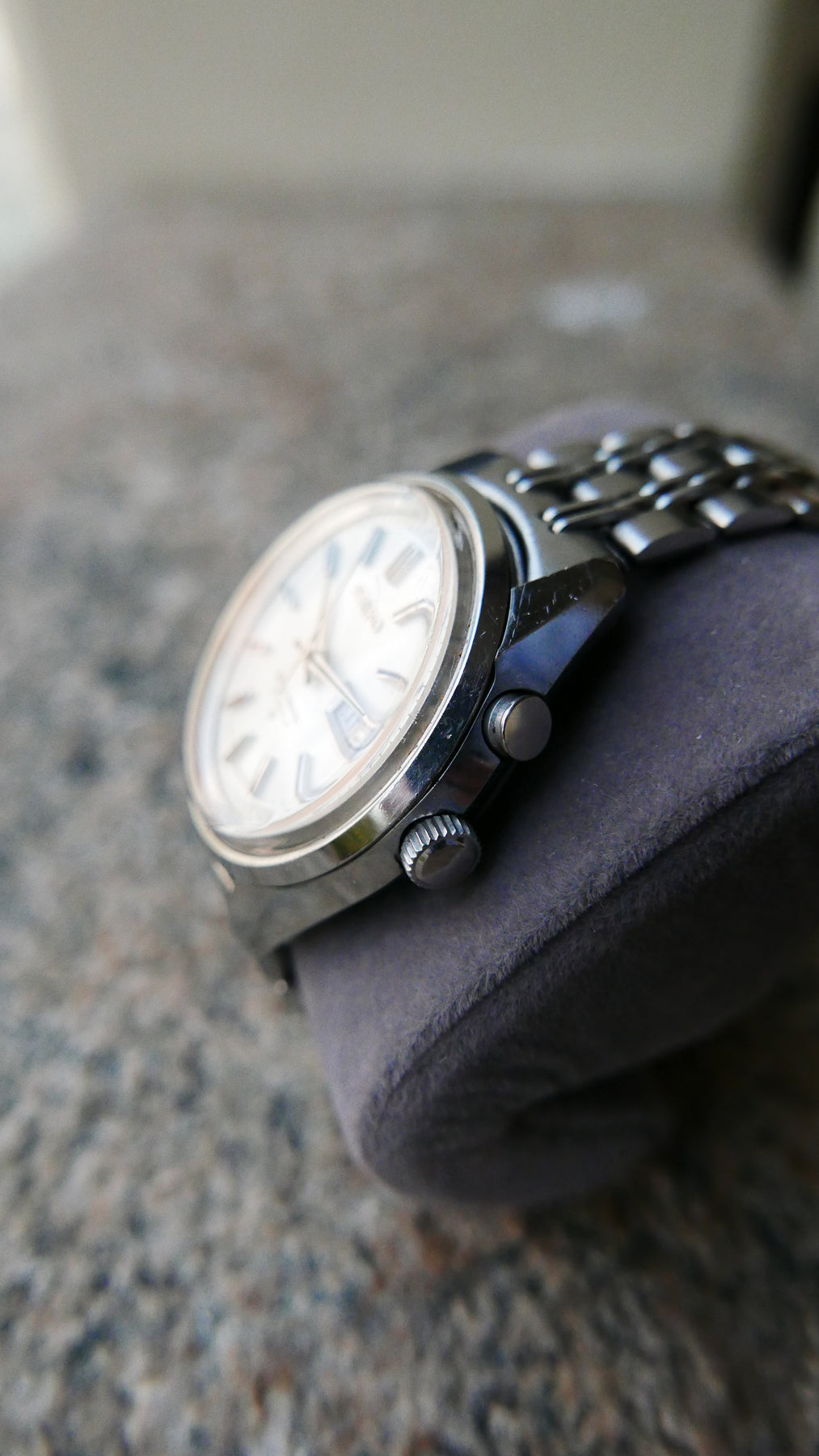 Case Condition: Mint condition with only minor usage mark on the case. The overall multidimentional mirror finish and the thickness of the case shape make the watch look modern.